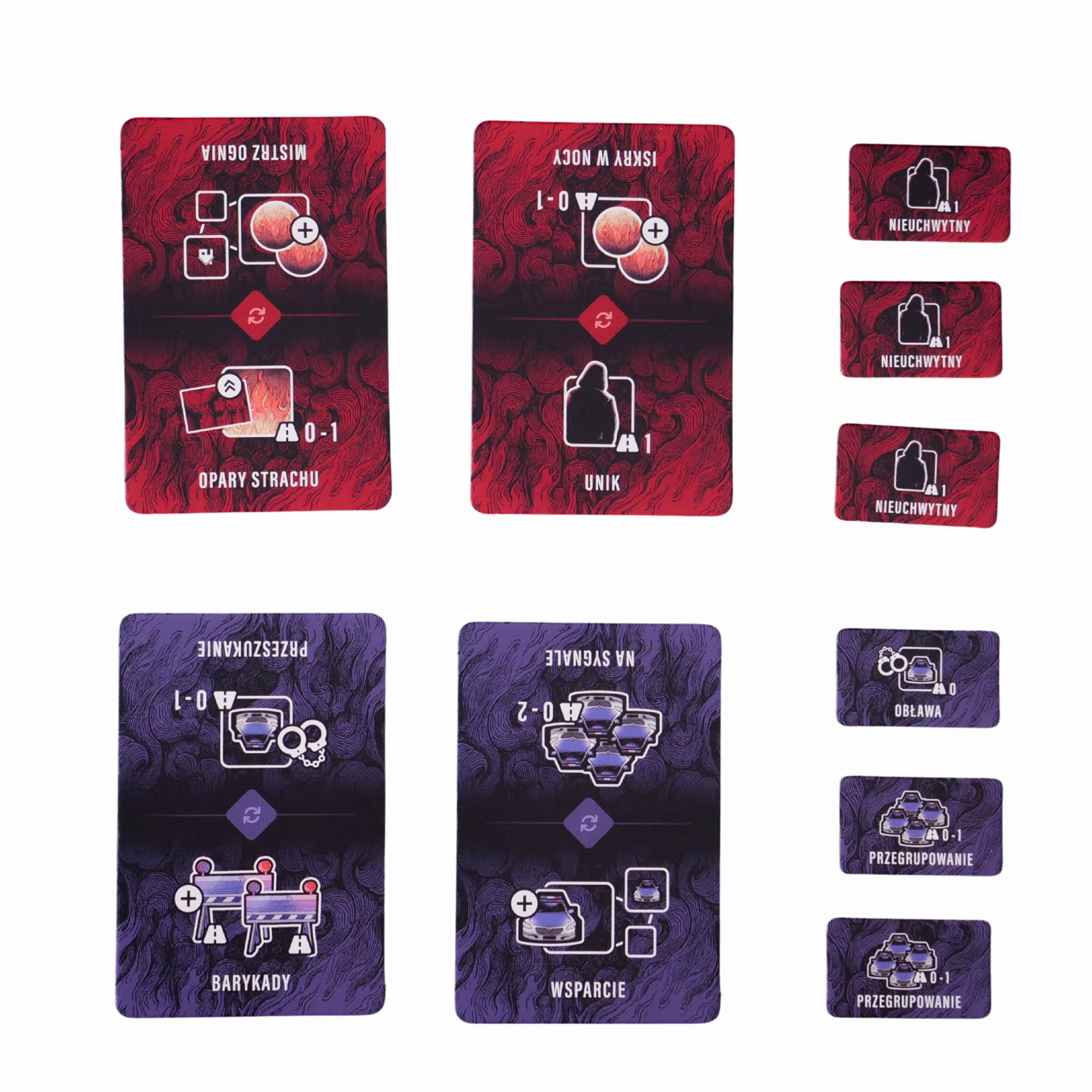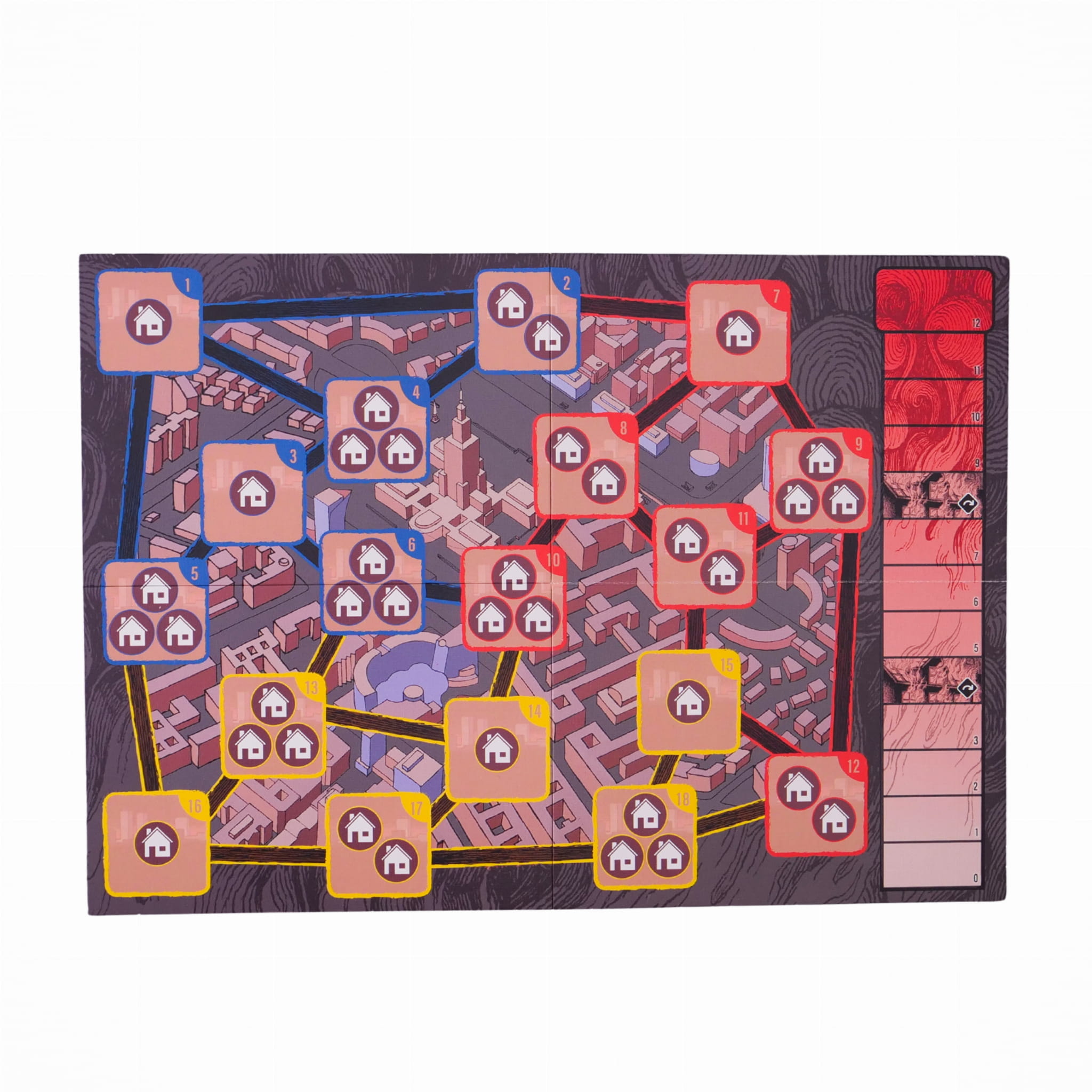 - 30 dwustronnych żetonów podpaleń/ spalonych osiedli,
