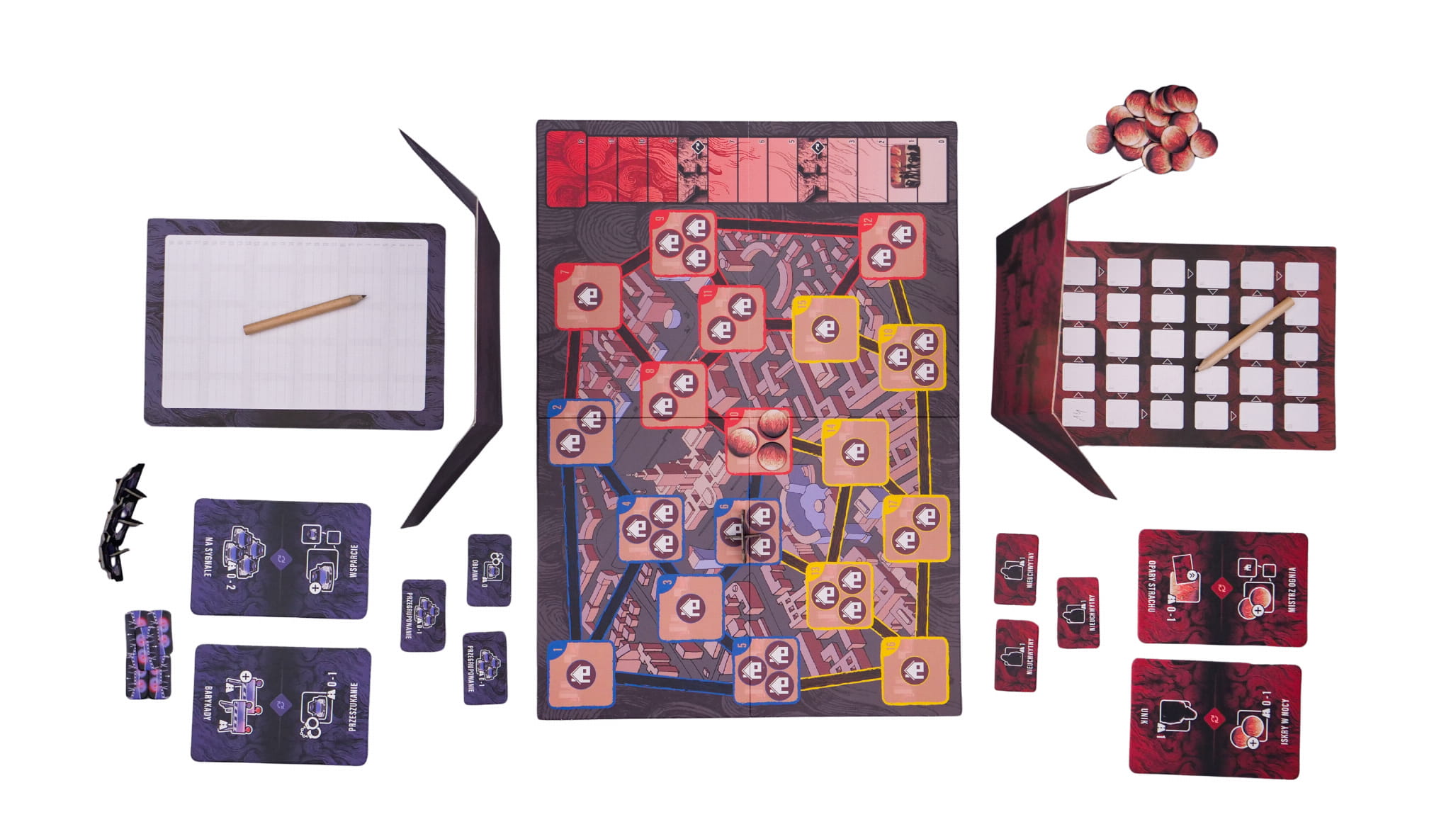- 5 żetonów barykad, 1 żeton paniki,